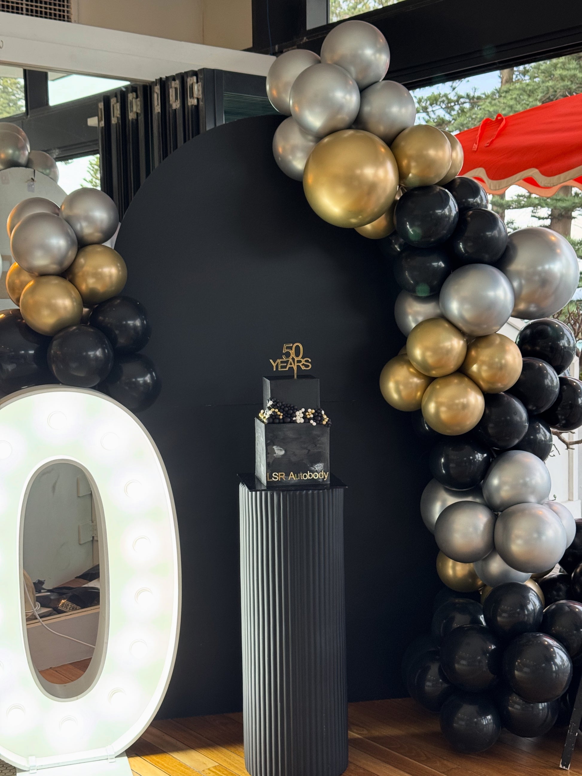 Create a sleek, modern statement with our Black Arched Backdrop, perfect for luxe birthdays, hens, engagements and evening celebrations.