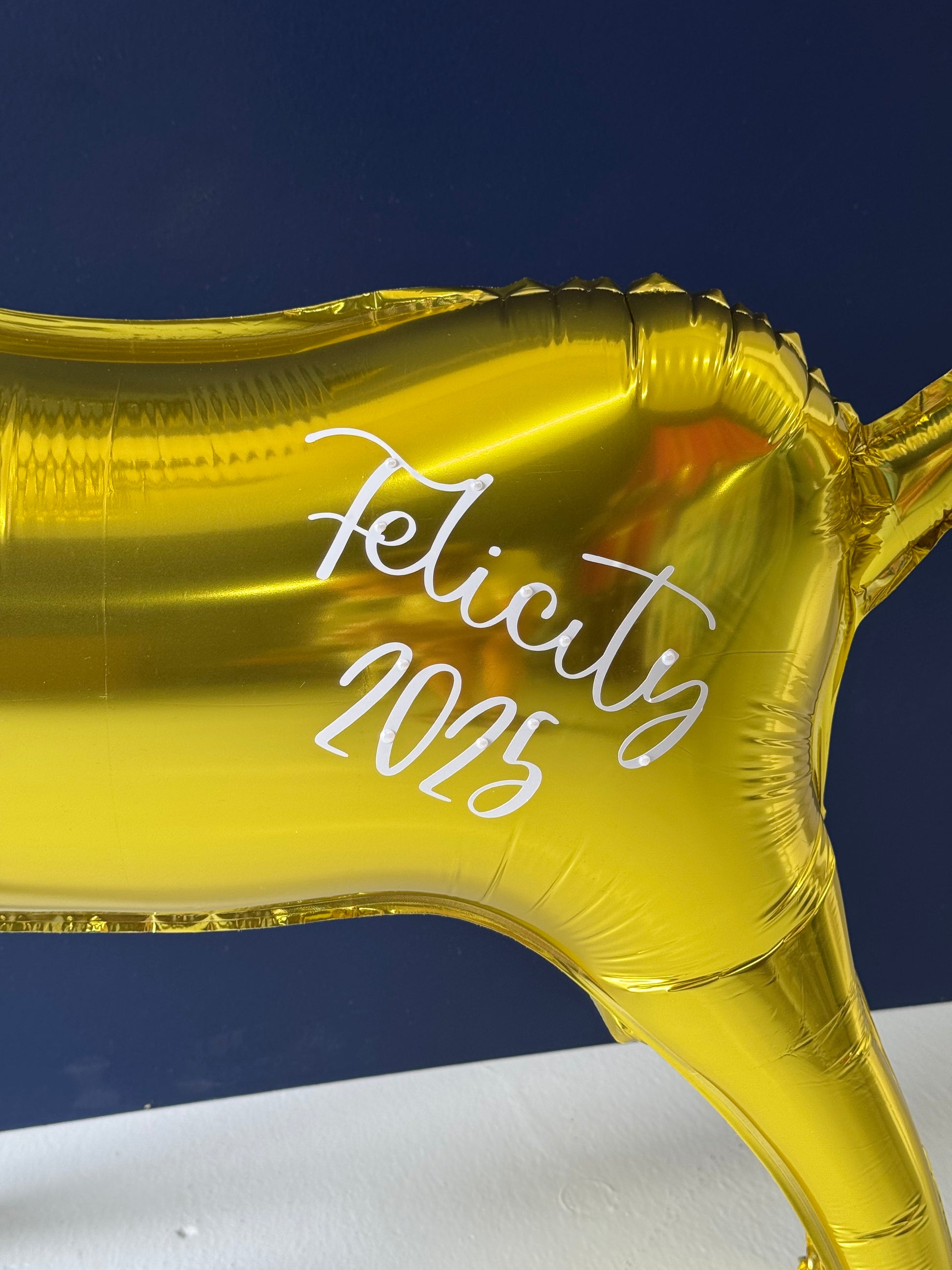 This 70cm tall Gold Reindeer balloon can be personalised with any name, making it a unique centrepiece for your celebration.