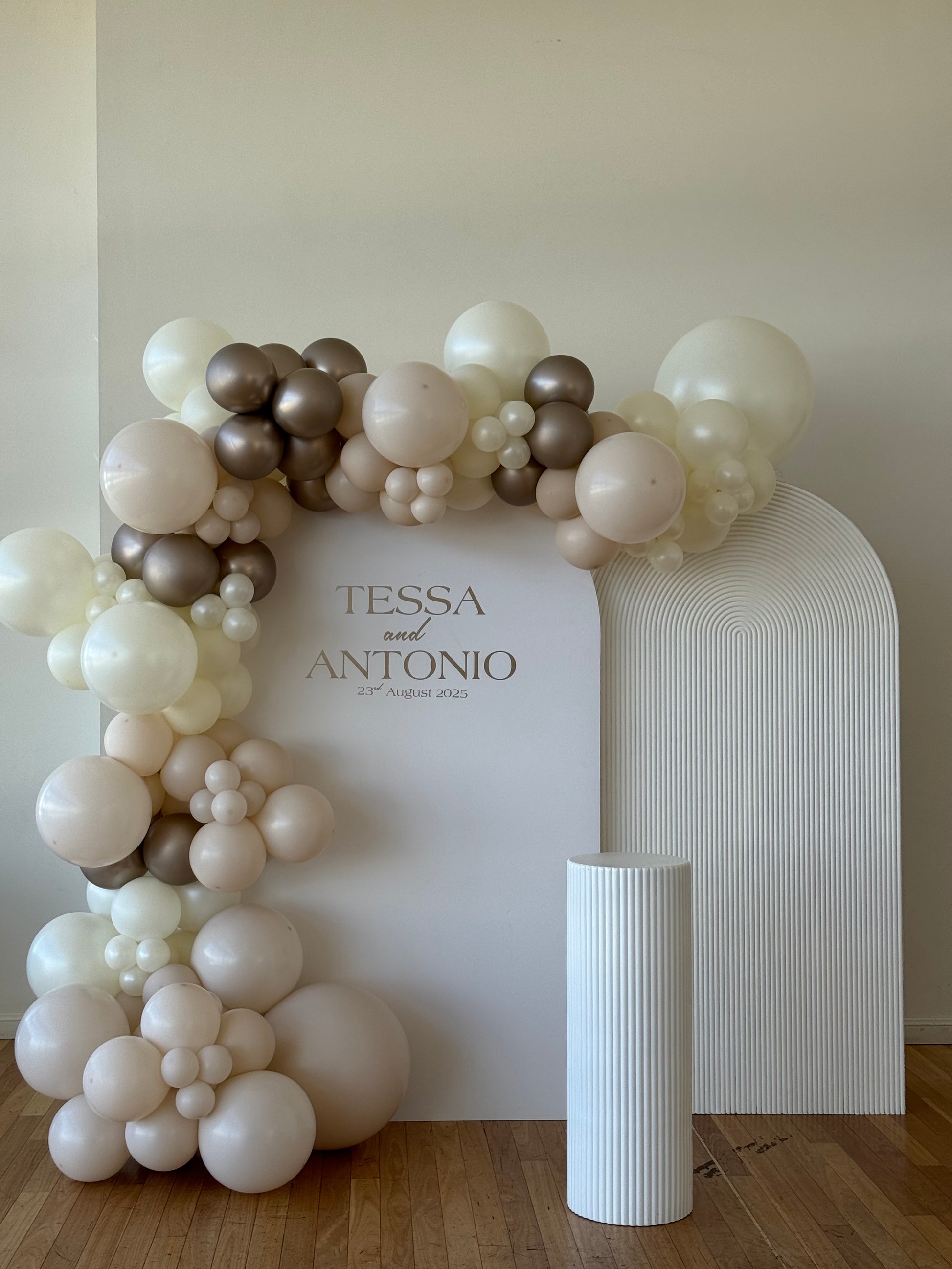 Perfect for elegant birthdays, baby showers, bridal events and minimal-luxe themes, this backdrop pairs beautifully with balloons, florals or signage for a refined finish.